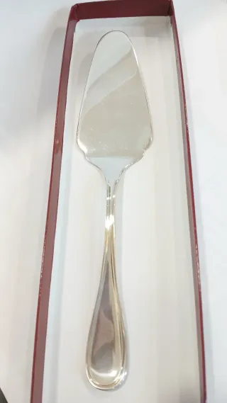 Pá de bolo elegante em prata contrastada, com um design clássico e requintado. - Material: Prata contrastada - Acabamento: Polido - Detalhes: Bordas trabalhadas -126gr peso