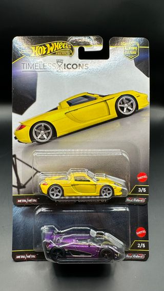 Dois carros, Koningsegg Agera R + Porsche Carrera GT, colecção timeless icons.