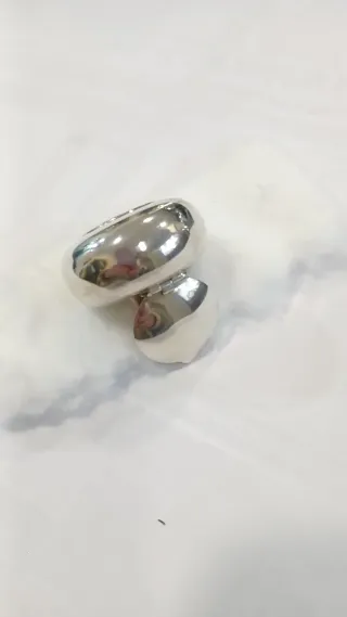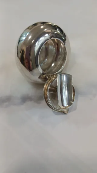 Elegante cinzeiro em formato de caixa, feito em prata. - Design esférico com tampa. - Acabamento polido em prata.