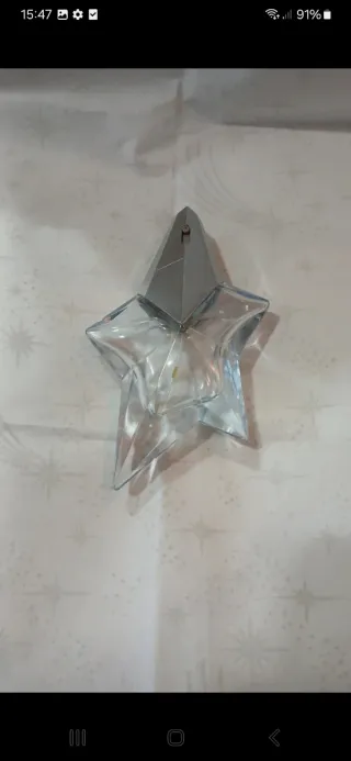 Frasco vazio da fragrância Angel de Thierry Mugler. Este frasco é recarregável. - Design icónico em forma de estrela. - Feito em vidro. - Capacidade de 25ml / 0.8 US Fl.Oz.