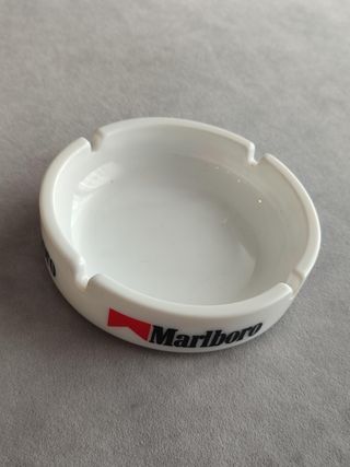 Conjunto de coleccionables de la marca Marlboro. - Cenicero blanco con logo - nuevo - Llavero con diseño de la marca - usado - Mechero Encendedor dorado en su caja - nuevo - Caja de cerillas con diseño - nuevo Consulte las imágenes para conocer el estado de los articolos.