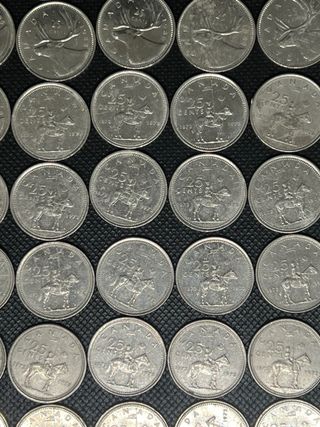 Lote 60 moedas 25 cents Canada 1974