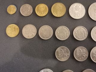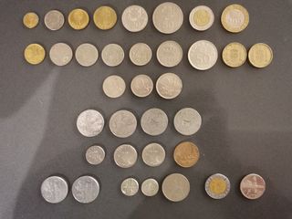 Lote de 35 Moedas antigas do Mundo! Entre elas: - PORTUGAL - 1, 2$50, 5, 10, 20, 50, 100 e 200 escudos - ESPANHA - 5 (x3), 25, 50, 100 (x2) pesetas - ESPANHA (MUNDIAL '82) - 1, 5 (x3), 25 pesetas - TUNÍSIA - 1 (x4) dinar - FRANÇA - 1/2, 1 (x2), 10 francos - ITÁLIA - 100 (x2) liras - REINO UNIDO - 5 (x2), 10 pence - MÉXICO - 5 pesos - MACAU - 1 pataca Se pretender alguma moeda em separado, contacte-me. * Since 2011 *