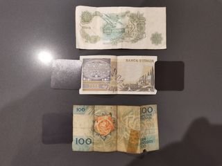 3 notas diferentes, entre elas: - 1 Pound (Inglaterra) - 2000 Liras (Itália) - 100 Escudos c/ Fernando Pessoa (Portugal) Se pretender alguma das notas em separado, contacte-me. * Since 2011 *