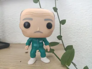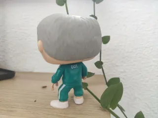 Figura Funko Pop do personagem 001 de Squid Game (Round 6). - Detalhe do número 001 na roupa. - Design característico da linha Funko Pop.