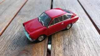 Miniatura do Fiat 124 Coupé da Altaya, escala 1:43. - Réplica detalhada do icónico carro desportivo. - Apresenta matrícula portuguesa. - Ideal para colecionadores.