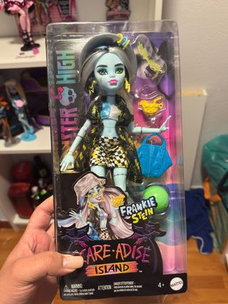 Boneca Frankie Stein da linha Monster High Scare-Adise Island. A embalagem contém a boneca e seus acessórios. - Boneca Frankie Stein. - Acessórios inclusos. - Tema: Scare-Adise Island.