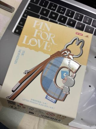 Popmart Labubu Pin for Love Key chain - Letter F Novo mas aberto envolvido no plástico original Plástico aberto Códigos de verificação originais e não revelados para verificação posterior de oficialização.