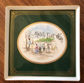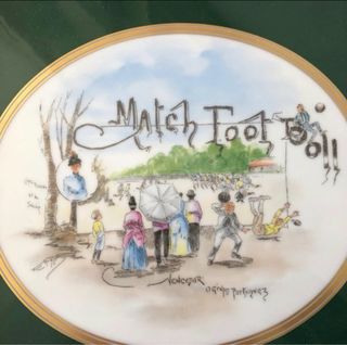 Bandeja decorativa em porcelana da Vista Alegre. “Bandeja Biblioteca” em porcelana Vista Alegre, com elementos a ouro. Peça comemorativa dos 125 anos da realização do 1* Jogo de Futebol VA, em 22/01/1889. Edição especial de 2004. Nova, com caixa 26,5 x 26,5 cm - Peça de coleção.