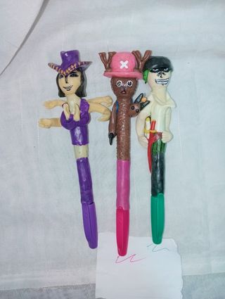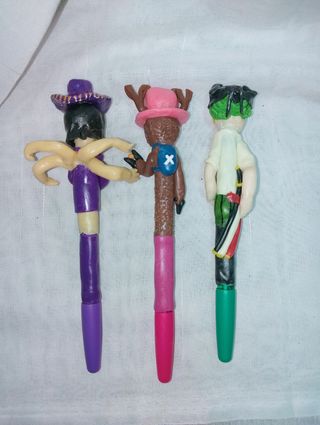 Conjunto de 3 canetas de One Piece *nunca foram usadas (apenas experimentei para ver se escreviam,como se pode ver na foto,a cor da escrita é a cor da caneta) *a caneta da Nico Robin infelizmente não escreveu (quando tentei) *Medidas nas fotos *as figuras são feitas em biscuit