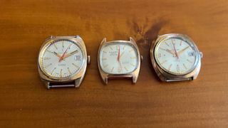Três relógios de pulso Cauny vintage, mecânicos. - Mostradores em estado. - Caixas em tons dourados. - Mecanismo manual. necessitam de limpeza e revisão. não estã a trabalhar otimo projecto de restauro