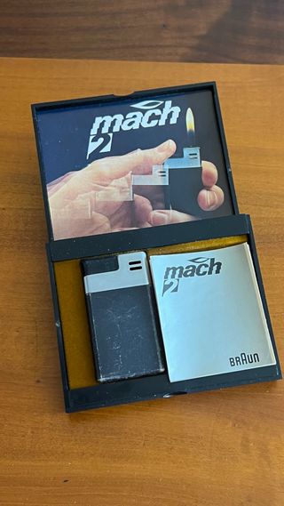 Isqueiro vintage Braun Mach2, em caixa e com documentação original. Apresenta-se em bom estado de conservação. - Marca: Braun - Modelo: Mach2 - Inclui isqueiro, caixa e manual. w.germany