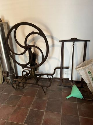 Alambique - 1650€ Rodas de carroça simples - 350€ (par) Bailarina antiga nacional "Victor J.D.Monteiro" - 365€ Bomba de vinho muito antiga - vendido Fole de ferreiro muito antigo - vendido Conjunto de 3 pipas/pipos completo com cachorros em pedra - vendido Rodas de carroça antigas e raras (par) - 435€ Grade de bois antigo em muito bom estado - 250€ Limpador de milho antigo muito bonito - vendido Recolha a cargo do comprador.