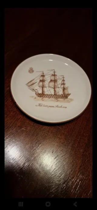 Artigo como novo. Diâmetro: 14cm - Motivo náutico. - Borda dourada.