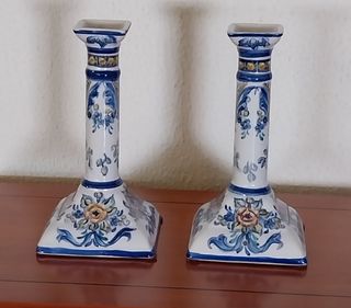 Lindos castiçais de cerâmica, pintados à mão, com um design floral charmoso. Estes castiçais são uma peça elegante para qualquer ambiente. - Dois castiçais incluídos. - Detalhes florais pintados à mão. - Base e topo quadrados. - Estilo clássico e elegante.