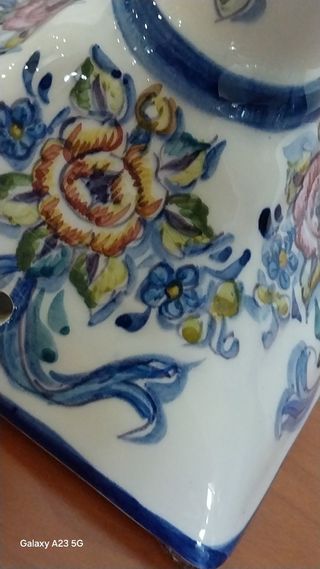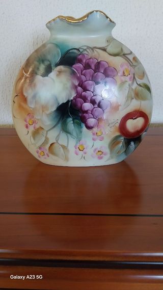 Lindas jarra de cerâmica, pintada à mão e assinada. Apresenta um design delicado com motivos de frutas. - Uma jarra com pinturas diferentes. - Detalhes pintados com requinte. - Formato arredondado e elegante.