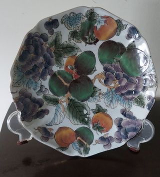 Lindo prato decorativo com pintura de frutas. Ideal para decoração. - Detalhes pintados à mão. - Formato octogonal.