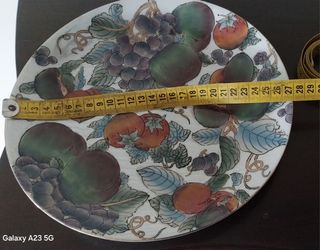 Lindo prato decorativo com pintura de frutas. Ideal para decoração. - Diâmetro aproximado de 28cm. - Apresenta cores vibrantes e detalhes delicados. - Peça única para dar um toque especial à sua casa.