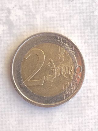 Moeda comemorativa de 2 euros da Espanha, emitida em 2009. - Design especial celebrando a UEM 1999-2009. - Detalhe do mapa da Europa no anel externo.