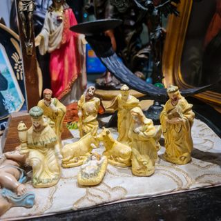 Conjunto ideal para colecionadores, apreciadores de presépios antigos ou para quem valoriza uma decoração de Natal com carácter, história e autenticidade. ⭐ Características principais Conjunto completo de presépio Cerâmica pintada à mão Estilo clássico / tradicional Detalhes dourados e patine do tempo Produção antiga (séc. XX) Peças decorativas e colecionáveis ⚠️ Nota sobre o estado Apenas 1 dos Reis Magos apresenta uma pequena lasca na base, sem afetar a estabilidade, estrutura ou leitura estética do presépio. Restantes figuras em bom estado geral, com desgaste natural do tempo compatível com a antiguidade.
