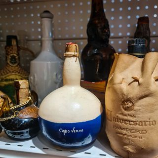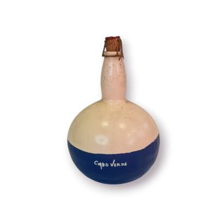 A peça encontra-se vazia, sem qualquer líquido no interior, sendo destinada exclusivamente a fins decorativos ou de coleção. 🔎 Características principais: Origem/inspiração: Cabo Verde Material: Cerâmica artesanal Cores: Azul e bege Rolha em cortiça original Inscrição manual “Cabo Verde” Peça decorativa / colecionável 📏 Medidas: Altura: 19 cm Largura máxima: 12 cm ⚠️ Nota sobre o estado: Em bom estado geral Pequenas marcas naturais do processo artesanal Interior vazio (não contém líquido)