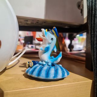Apresenta pintura manual em tons de azul e branco, com pormenores coloridos que lhe conferem personalidade e movimento. Um objeto decorativo leve, alegre e com forte apelo visual. 📏 Medidas: Altura: 9 cm Largura: 8 cm 🧱 Material: Resina pintada à mão 🔹 Características principais Estatueta decorativa com tema marítimo Representação de golfinho com chapéu de marinheiro Pintura manual em tons de azul Ideal para decoração náutica ou infantil Peça leve e fácil de integrar em qualquer espaço Dimensão compacta, perfeita para prateleiras ou vitrines ℹ️ Estado de conservação Em bom estado geral, com ligeiros sinais normais.