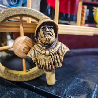 Rolha decorativa com o tema marinheiro, ideal para garrafas. Uma peça de pequena dimensão, mas cheia de carácter, ideal para quem aprecia objetos decorativos ligados ao mar e à tradição náutica. Características principais: Rolha decorativa para garrafa Figura de marinheiro em relevo Acabamento pintado à mão com efeito envelhecido Tema marítimo / náutico Funcional e decorativa Fácil de integrar em qualquer garrafa padrão 📌 Estado de conservação: Bom estado geral, com marcas normais do tempo e do fabrico artesanal. Sem quebras ou falhas estruturais.