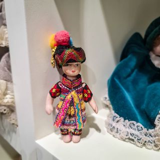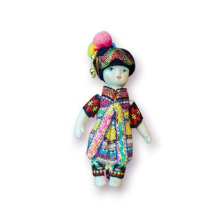 Boneca de porcelana com traje típico andino, feita à mão. Uma peça de pequeno formato mas grande impacto visual, ideal para colecionadores de bonecas étnicas, amantes de artesanato tradicional ou como elemento decorativo de inspiração cultural. Características principais: Boneca decorativa em porcelana Traje típico tradicional andino Vestuário têxtil artesanal multicolorido Touca com pompons decorativos Altura aproximada: 11 cm Peça cultural e colecionável Estado: Muito bom estado geral, sem quebras ou danos visíveis. Pequenos sinais naturais do tempo compatíveis com peças artesanais.
