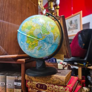 Uma peça clássica, intemporal e sempre atual, perfeita tanto para fins educativos como para dar um toque intelectual e viajante a qualquer ambiente. 📏 Altura total: 21 cm ⭐ Características principais Globo terrestre político Cartografia clara e legível Base de mesa em plástico preto Estrutura estável e funcional Ideal para estudo, escritório ou decoração Peça versátil e intemporal 📝 Estado de conservação: Muito bom estado geral. Sem quebras ou falhas estruturais. Apresenta apenas sinais normais de uso/manuseamento compatíveis com a idade.
