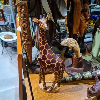A girafa encontra-se sobre base em madeira maciça, garantindo boa estabilidade. O trabalho manual confere-lhe carácter único, com pequenas variações naturais da madeira que valorizam a peça. 🔹 Material: madeira maciça 🔹 Acabamento: pintura manual 🔹 Altura: 31 cm 🔹 Base: madeira natural 🔹 Estilo: étnico | africano | decoração natural 🔹 Peça decorativa artesanal 📏 Dimensões: Altura: 31 cm Base: aprox. 8–9 cm ⚖️ Peso: aprox. 350–450 g (estimado) 📌 Estado de conservação: muito bom estado geral, com sinais leves do tempo e do trabalho manual, normais neste tipo de peça artesanal. Sem quebras ou falhas estruturais.
