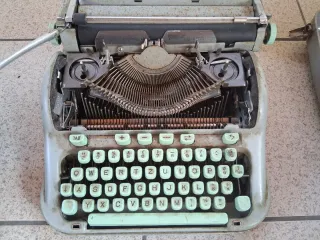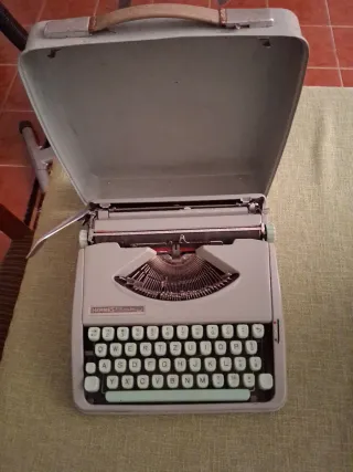 Máquina de escrever Hermes Baby, um clássico para colecionadores e entusiastas. - Design compacto e portátil. - Teclado QWERTY. - Inclui mala de transporte. Pode precisar pequena reparacao