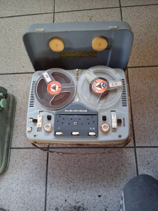 Gravador de rolo antigo, um verdadeiro objeto de coleção. - Design clássico e robusto. - Inclui a tampa protetora com almofadas. - Botões e mostradores característicos da época.