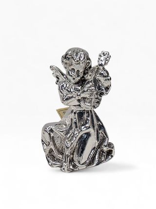 A peça mantém a etiqueta original da marca SIPALIU (Marca Reg.), com certificado indicando: “Núcleo crionita metalizada – recubrimiento plata 999 milésimas – totalmente garantizada” Trata-se de peça em metal com revestimento em prata 999 milésimas por eletroformação, protegida com laca. 📏 Altura: 10 cm 📏 Largura: 6,5 cm ⚖️ Peso: 151 g 🪙 Revestimento: Prata 999 milésimas 🏷️ Com etiqueta e certificado original 📌 Estado: Muito bom estado geral. Pequenos sinais normais de manuseamento. Base com feltro original intacto. Peça ideal para: Decoração clássica Presente simbólico Colecionadores de peças religiosas