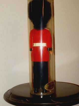 Boneco popular como souvenirs de Londres. Usa uniforme cerimonial da Guarda Britânica, composto por um casaco vermelho, calças escuras e um chapéu alto de pele de urso (Bearskin). Está numa embalagem de acrilico algo amarelecida mas o boneco nunca saiu da caixa. Os olhos dele abrem e fecham consoante a posição. Tem cerca de 23cm de altura. Adquirido nos anos 90.