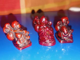 Três mini estatuetas de Buda Risonho