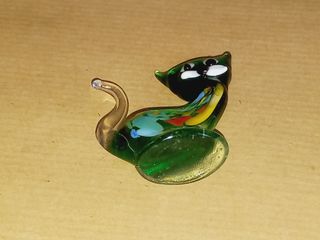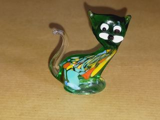 Estatueta de gato em vidro de Murano Peça feita à mão. A estatueta assemelha-se a outros gatos de vidro de Murano, que são conhecidos por capturar a elegância e o charme dos felinos. Cada peça é única, e pequenas variações no tamanho e nos detalhes são esperadas devido ao processo de fabricação artesanal. O vidro de Murano é conhecido mundialmente por sua beleza e qualidade excepcional. Com cerca de 5cm de altura. Adquirido nos anos 90.
