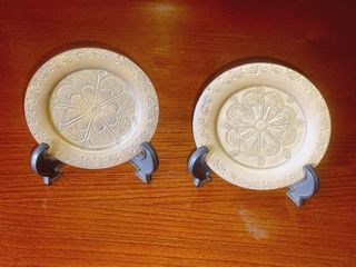 2 Pequenos pratos em latão com motivos florais