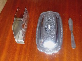 Manteigueira e Porta-guardanapos em Prata-Inox.