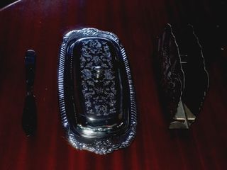 Artigos cá em casa há pelo menos 60 anos. O da esquerda é feito de latão ou bronze. O da direita ou é prata ou uma liga de niquel e zinco. Ambas com ornamentos em relevo. Cerca de 16cm de comprimento.