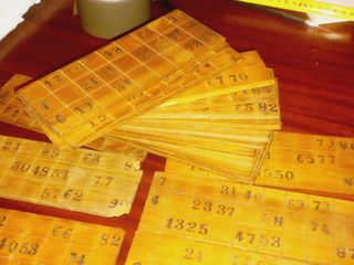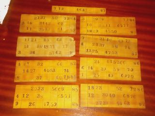 Raro jogo loto em madeira. Contem 24 tábuas númeradas, com 18 x 7cm. Numeros prensados nas tabuas. Algumas tábuas apresentam desgaste mas no geral estão muito bem conservadas e estimadas. No saco anexo existem os numeros a sortear, em cortiça, e diversas pedrinhas pretas e brancas para ir marcando os números sorteados. Artigo giríssimo pela raridade e estado de conservação.