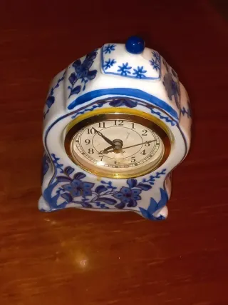 Relógio de mesa em cerâmica azul e branco