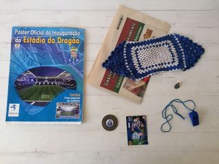 Vários artigos: pin, poster Vitor Baía 2004, cromo Lucho González, tapete, apito, caixa metálica, 3 bandeiras e medalha. Poster inaugural estádio do Dragão já vendido. 15€ a totalidade, 2 a 5€ cada peça - por favor indique qual pretende para alterar o preço antes do ato da compra. Se está a ver o anúncio, é porque se encontra disponível. Preço de envio por correio normal : 1€ (pagamento por MBway ou transferência). Levantamento em mão junto ao Terminal de Quarteira. Por favor contacte para mais informações e visite os meus outros anúncios. Obrigado.