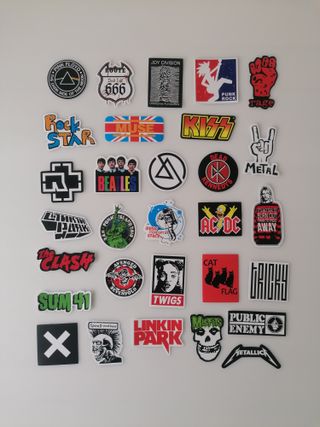 Coleção de vários autocolantes (100 unidades sem repetição) temáticos - bandas pock e rock, funk, punk, música, etc. Para aplicação em várias superfícies - computador, telemóvel, carro, casa, vidros, etc. Resistentes à água e excelente qualidade de impressão. Artigo novo e embalado. Por favor contacte-me para mais informações e visite os meus outros anúncios. Obrigado!
