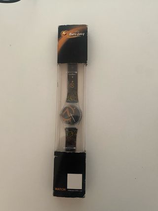 Relógio comemorativo do Euro 2004 em Portugal. - Design temático do evento. - Caixa original incluída. - Caixa em mau estado mas o relógio nunca foi retirado da caixa