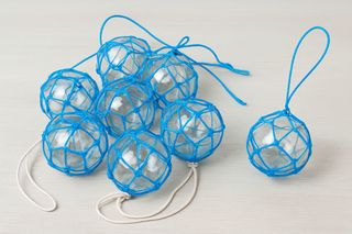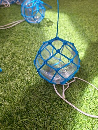 Boias de vidro com rede azul, perfeitas para uma decoração náutica autêntica. - Design vintage. - Rede de proteção em nylon azul. - Acabamento em vidro transparente. - Preço por unidade!!!