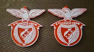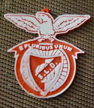 Emblema ou chaveiro do Sport Lisboa e Benfica (SLB). - Design com águia e escudo. - Detalhes em relevo branco sobre fundo vermelho.