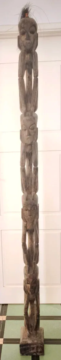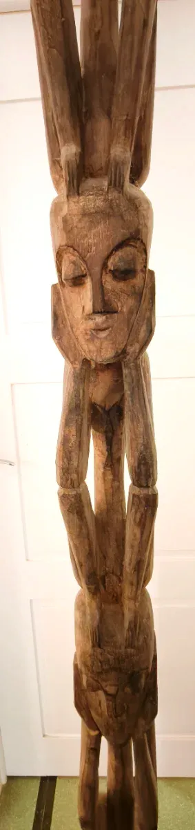 Impresionante escultura / tótem africano tallado en madera maciza, compuesto por figuras humanas superpuestas, de fuerte presencia simbólica y estética tribal. Medidas: aprox. 2,00 m alto x 0,16 x 0,16 m Material: madera maciza tallada a mano Estilo: arte étnico africano / tribal Formato: pieza vertical autoportante Estado: bueno, con pátina natural y desgaste propio del tiempo (ver fotos) 📌 Pieza muy decorativa y poco común por su altura. 📌 Ideal para espacios amplios: salón, loft, casa rural, hotel, restaurante, galería o colección privada. 📌 No es una reproducción moderna decorativa. Talla artesanal real. Negociable