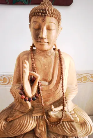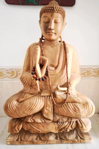 Buda tallado en madera maciza, pieza grande y muy decorativa. Trabajo artesanal con gran nivel de detalle y excelente presencia. Escultura ideal para decoración zen, meditación, salón, estudio o casa de campo. Transmite calma y equilibrio. 🌳 Material: madera maciza 📐 Medidas: 40 × 18 × 65 cm 🎨 Color: tono natural de la madera 📦 Estado: muy bueno Pieza pesada y robusta, no es resina ni material industrial. Precio negociable