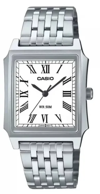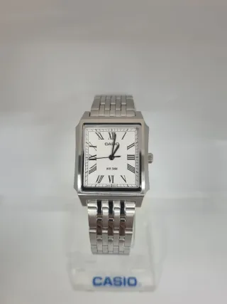 Relógio Casio original com design clássico e movimento quartz. - Caixa e pulseira em aço inoxidável. - Mostrador branco com números romanos. - Resistência à água WR 50M. - Movimento Japan Movt.