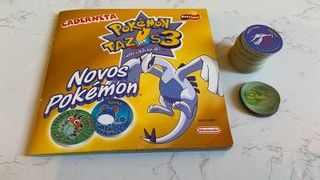 Inclui: - Caderneta Pokémon Tazos 3 da Matutano, dos anos 90 - Inclui Pokémon Tazos (45/70) + EvoluTazos (10/20) - Inclui adicionalmente 43 Pokémon Tazos + 4 EvoluTazos, repetidos. Nota: - 2 EvoluTazos estão um pouco dobrados - 1 EvoluTazo tem a parte superior descolada Envio rápido e muito bem embalado.